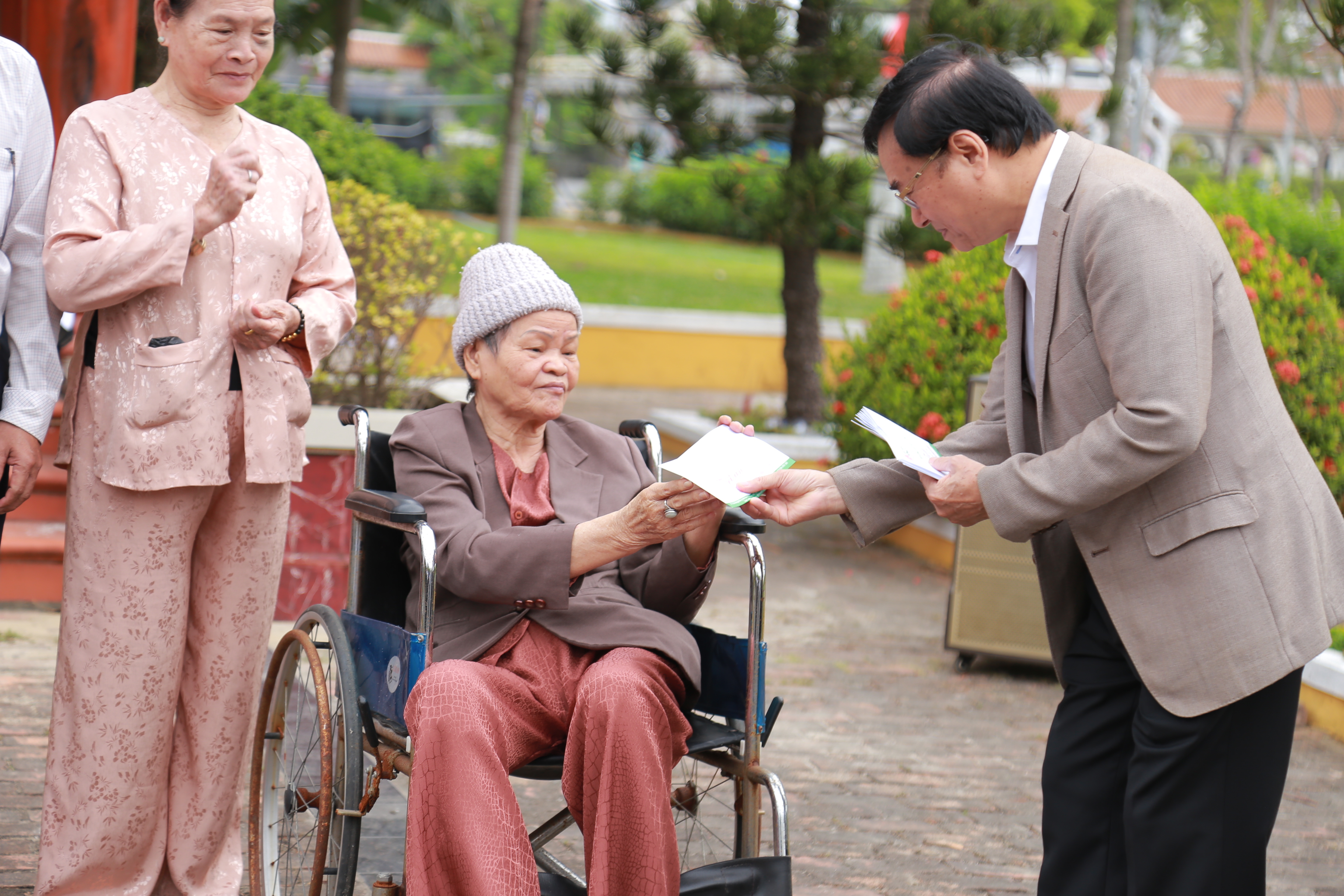 Thầy Lương Minh Sâm - Chủ tịch Hội đồng trường Đại học Đông Á thăm hỏi và trao quà tri ân đến các gia đình thân nhân liệt sĩ Gạc Ma tại chương trình.