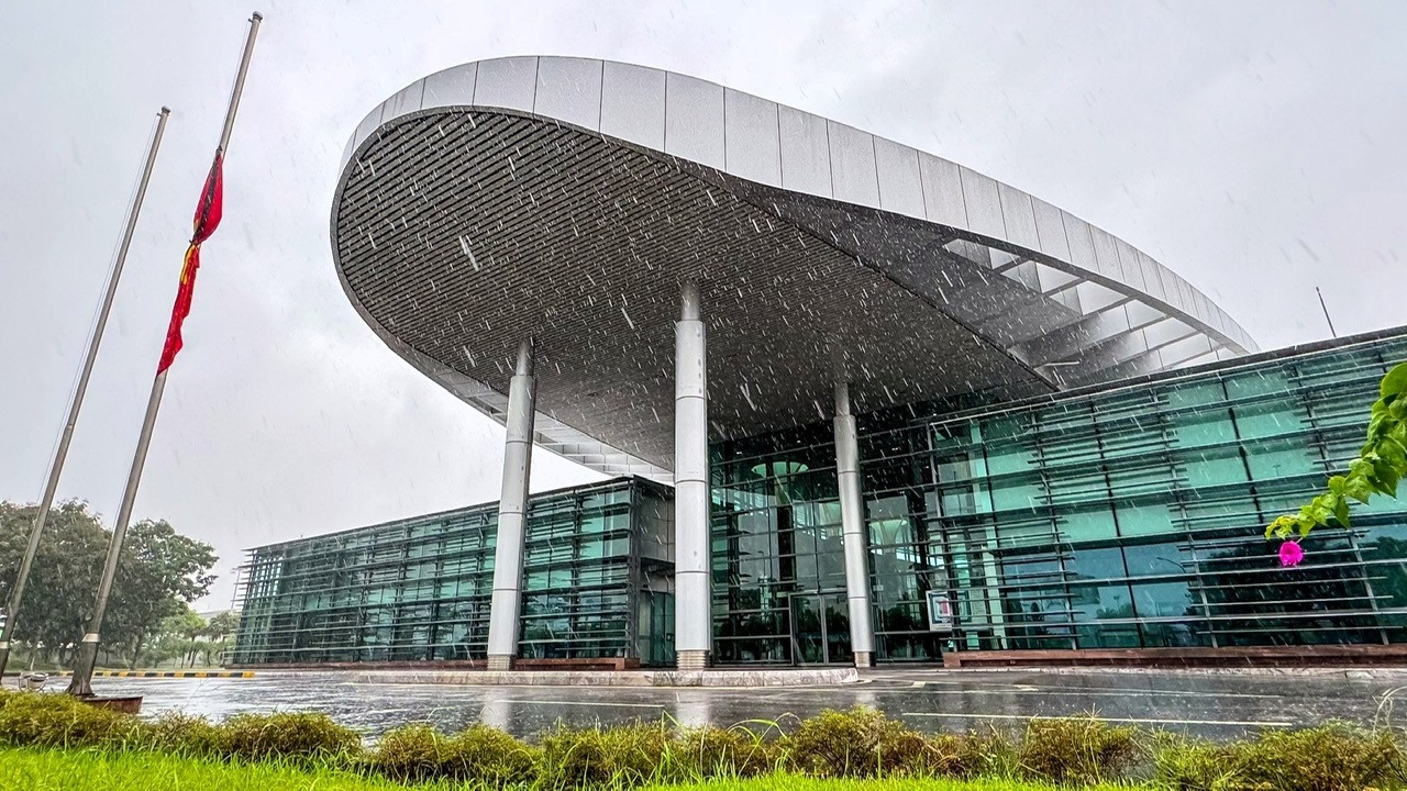Cảng hàng không Quốc tế Nội Bài treo cờ rủ. (Ảnh: ACV)
