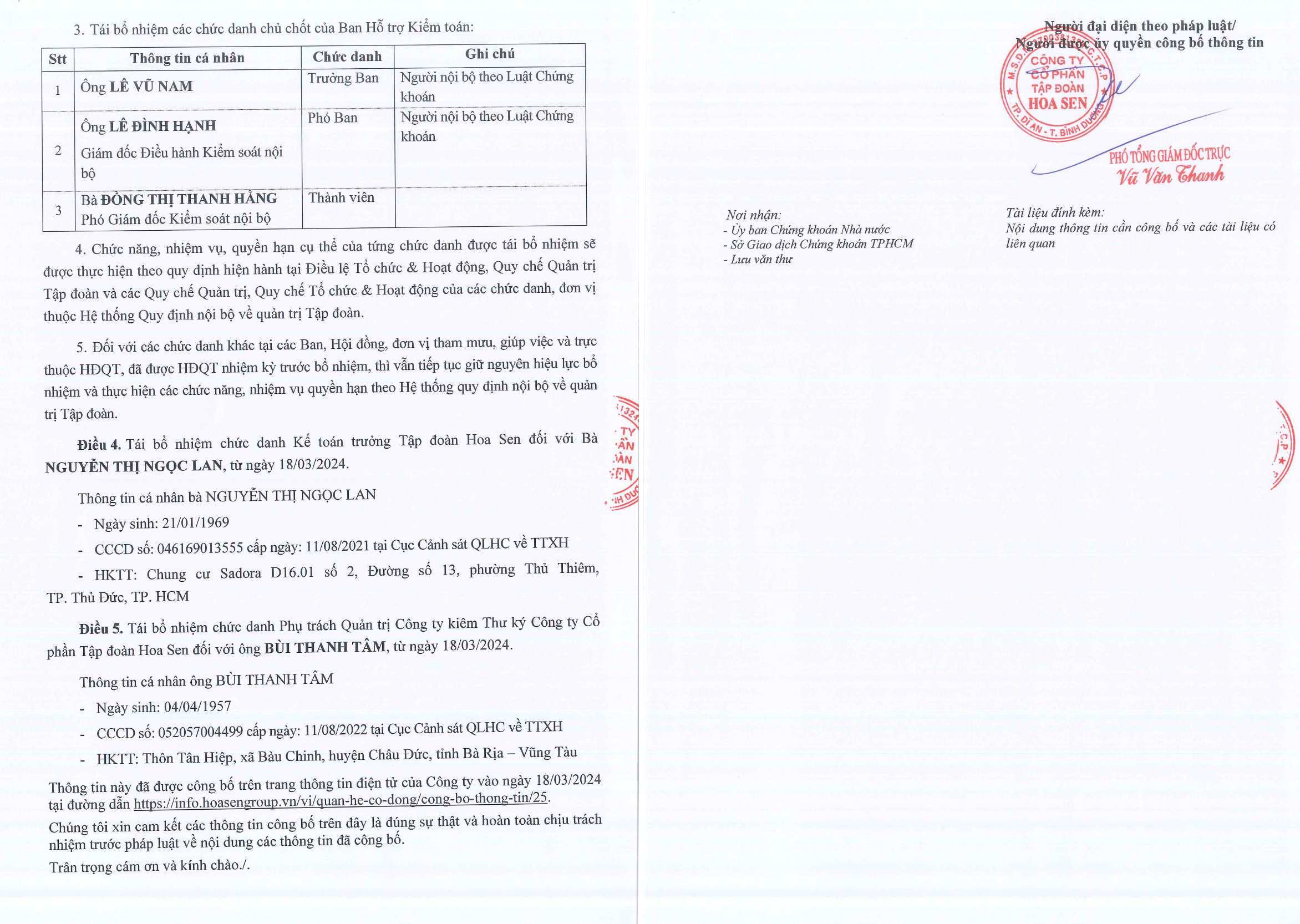 Cụ thể, giai đoạn 2010 – 2017, ông N khi đó đang là Trường khoa Luật Trường Đại học Kinh tế - Luật giữ chức vụ Trưởng ban Kiểm soát thuộc Công ty Hoa Sen; giai đoạn 2019-2024 ông N được bổ nhiệm Phó Hiệu trưởng Trường Đại học Kinh tế - Luật (UEL) đồng thời giữ chức vụ Trưởng ban Hỗ trợ Kiểm toán tại Công ty Hoa Sen; giai đoạn 2024 đến nay Phó Giáo sư L.V.N được tái bổ nhiệm Phó Hiệu trưởng Trường Đại học Kinh tế - Luật (UEL) đồng thời giữ chức vụ Trưởng ban Hỗ trợ Kiểm toán tại Công ty Hoa Sen.