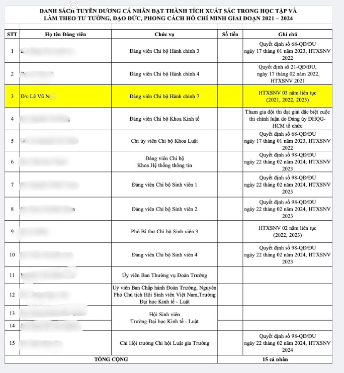 Đồng thời trong từ năm 2010 đến nay, ông L.V.N đều được đánh giá hoàn thành nhiệm vụ, nhận nhiều danh hiệu chiến sĩ thi đua, gương dân vận khéo…cấp cơ sở (Đại học Quốc gia Thành phố Hồ Chí Minh). Điều này đặt ra câu hỏi về quá trình giới thiệu nhân sự, thẩm định hồ sơ…trong việc bổ nhiệm cán bộ.