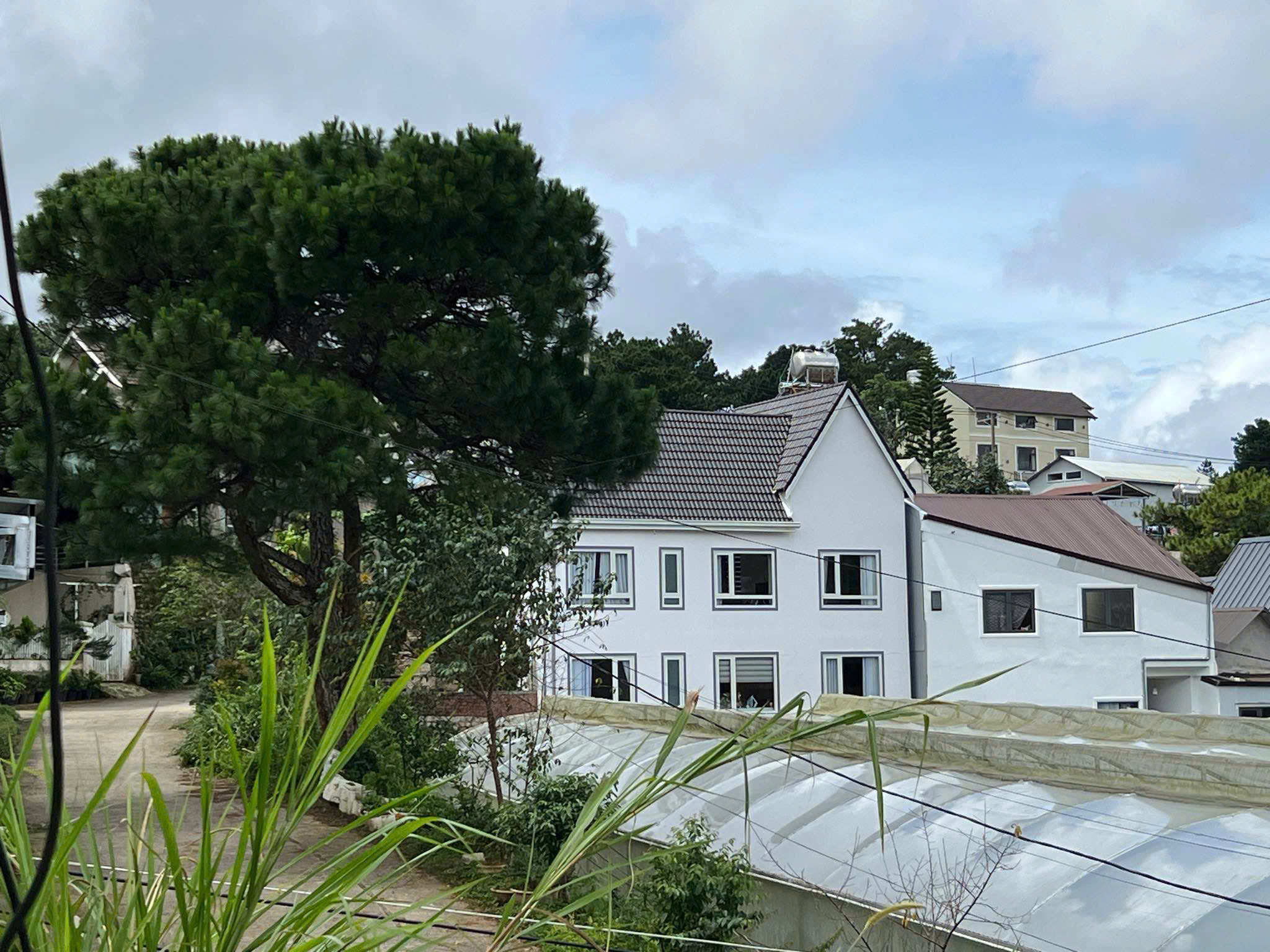 Những căn biệt thự nguy nga tráng lệ, nổi bật khi nhìn từ vườn dâu.