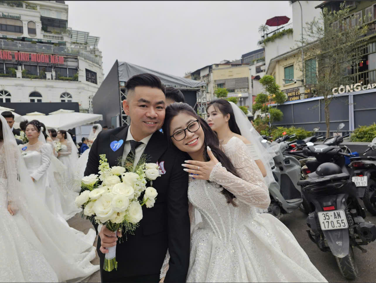“Sẽ nhớ mãi khoảnh khắc tháng 12, mang theo cái rét ngọt ngào đưa Hà Nội vào mùa đẹp nhất trong năm. Tiết trời cũng khéo chiều lòng người, theo má hồng hây hây cô gái Hà thành dịu dàng xuống phố. Trong nắng vàng như ươm mật, trong lá vàng như mắt nai dõi theo mỗi phố phường… cảm như mong muốn xích lại gần nhau thật giản dị, gần gũi. Khi từng bày chim ríu rít kéo về làm tổ, khi Hà Nội chuyển mình rét ngọt ngày mùa cưới ùa về đẹp như thơ… các bạn nhé” – Cũng chính là lời nhắn nhủ đầy yêu thương của cô dâu Nguyễn Thị Mai cùng 79 cặp đôi đồng hành trong “Yêu là hạnh phúc” tại Vietnam happy Fest 2025…