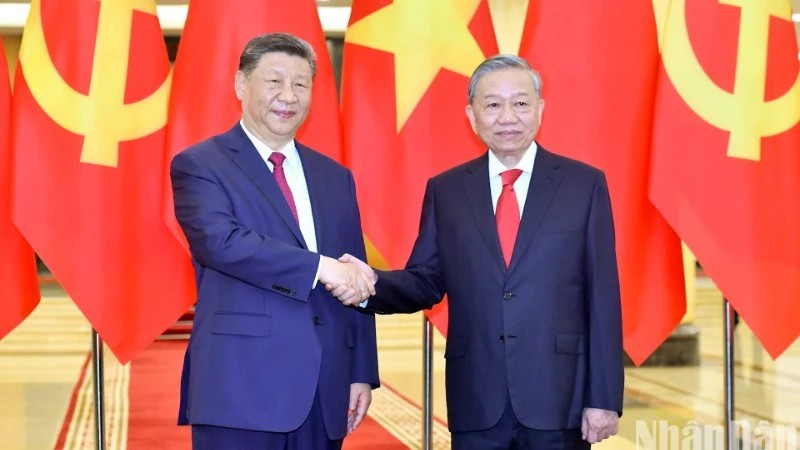 Tổng Bí thư, Chủ tịch Trung Quốc Tập Cận Bình trân trọng cảm ơn Tổng Bí thư Tô Lâm, Chủ tịch nước Lương Cường, các đồng chí lãnh đạo Đảng, Nhà nước Việt Nam và nhân dân Việt Nam về sự tiếp đón trọng thị, thân tình và hữu nghị; trân trọng mời Tổng Bí thư Tô Lâm và Chủ tịch nước Lương Cường sớm thăm lại Trung Quốc. Tổng Bí thư Tô Lâm, Chủ tịch nước Lương Cường bày tỏ cảm ơn và vui vẻ nhận lời.