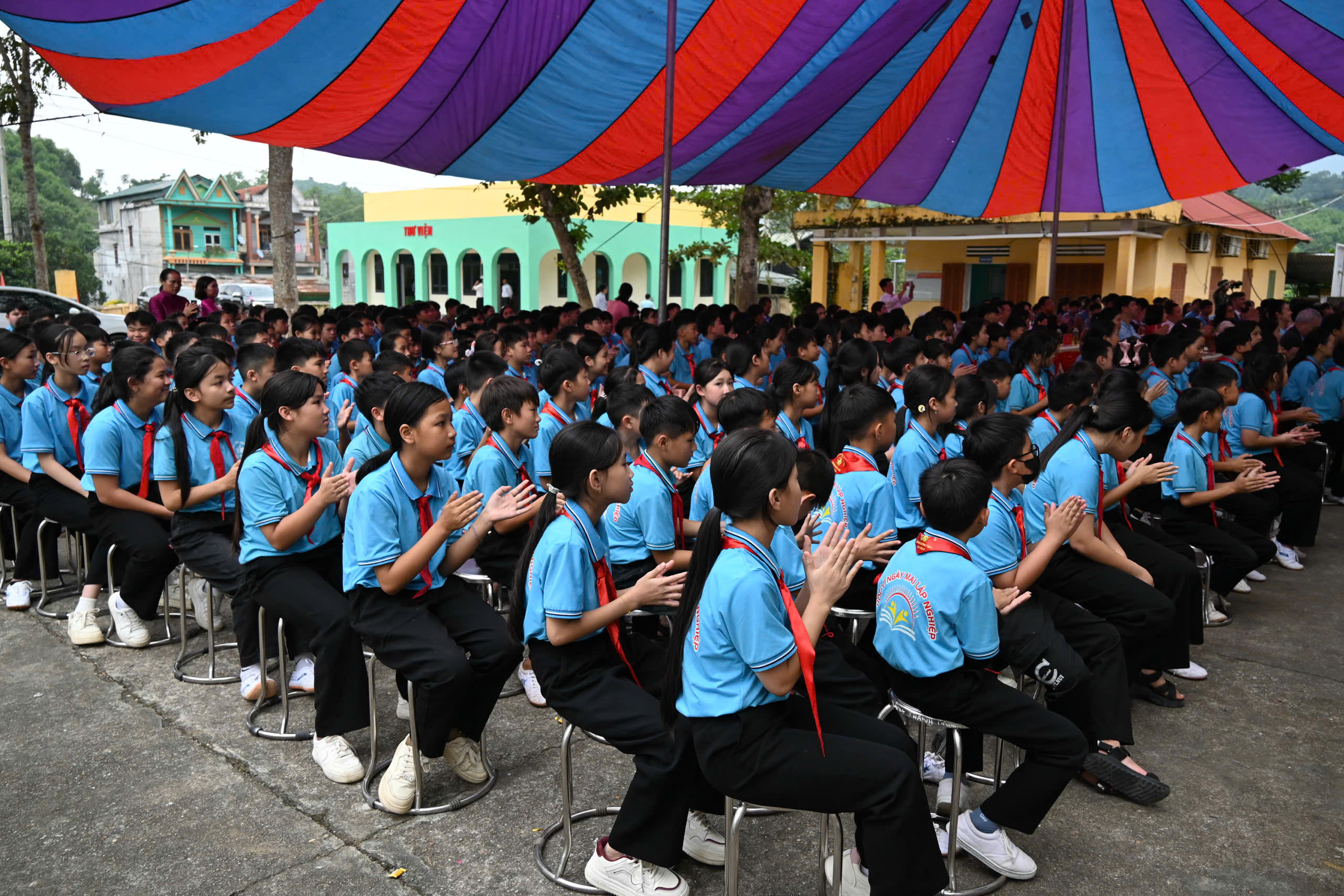 Các em học sinh tại Lễ khánh thành Thư viện trường THCS Tân Trào.
