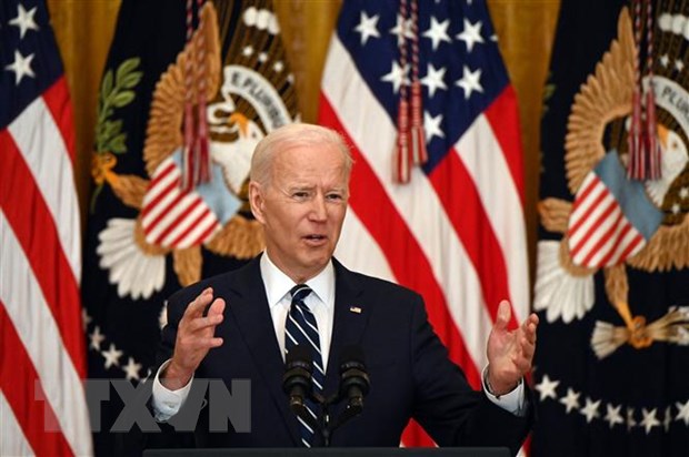 Tổng thống Mỹ Joe Biden phát biểu tại cuộc họp báo ở Nhà Trắng. (Ảnh: AFP/TTXVN)
