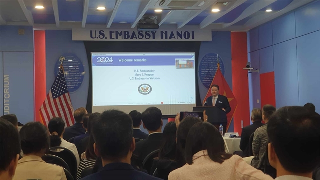 US Ambassador in Việt Nam Marc E. Knapper speaks to participants at the conference to begin registration