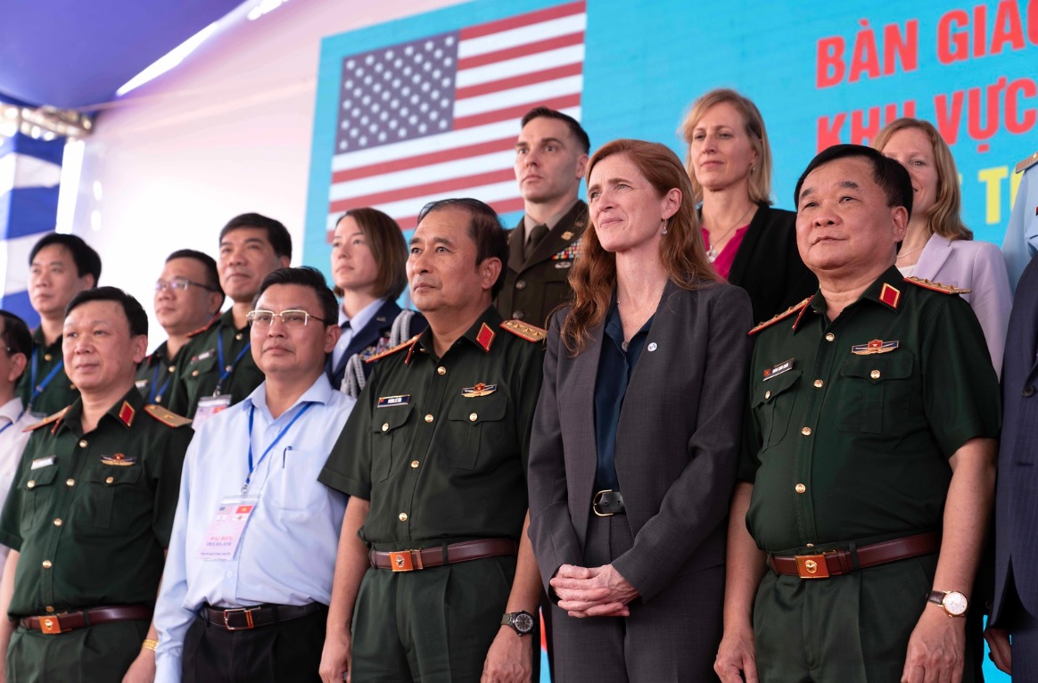 Samantha Power, US Ambassador to Vietnam Marc Knapper, Senior Lt.Gen. Hoang Xuan Chien, Vietnamese Deputy Minister of National Defense, announced a new contract worth $73 million to treat and clean up the soil at Bien Hoa Air Base. Photo: USAID