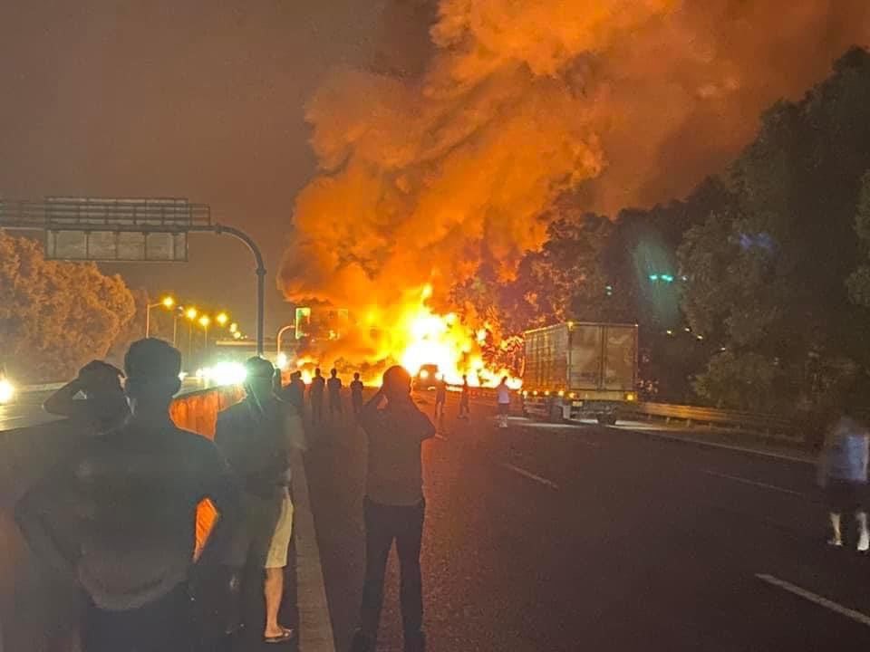 Ghi nhận, thời điểm trên, khi lưu thông trên cao tốc, sau khi đâm vào đuôi xe tải ở gần nút giao quốc lộ 37, xã Gia Khánh, huyện Gia Lộc, (Hải Dương) xe bồn chở xăng lật nghiêng, tạo tiếng nổ cực lớn. Xăng tràn ra mặt đường, bốc cháy ngùn ngụt.