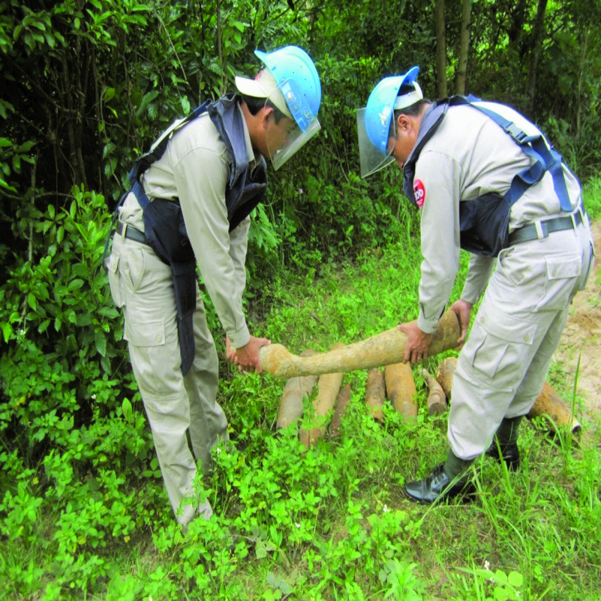 Nhân viên của tổ chức Peace Trees Việt Nam đang di dời vật liệu nổ (Ảnh: Peace Trees Việt Nam)