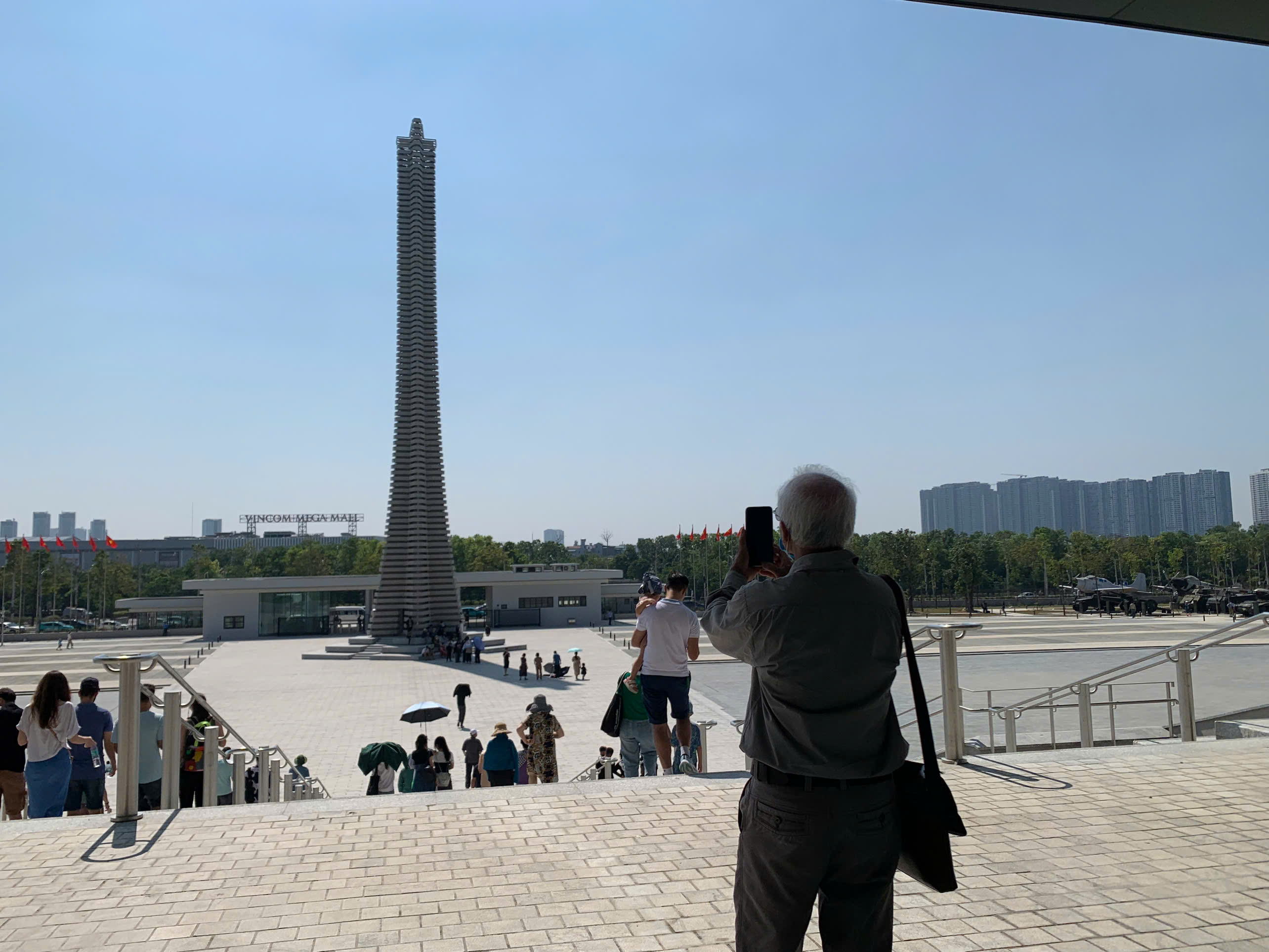 Tháp Chiến thắng cao 45 mét, tượng trưng cho dấu mốc năm 1945, Chủ tịch Hồ Chí Minh đọc bản tuyên ngôn độc lập khai sinh ra nước Việt Nam Dân chủ Cộng hòa