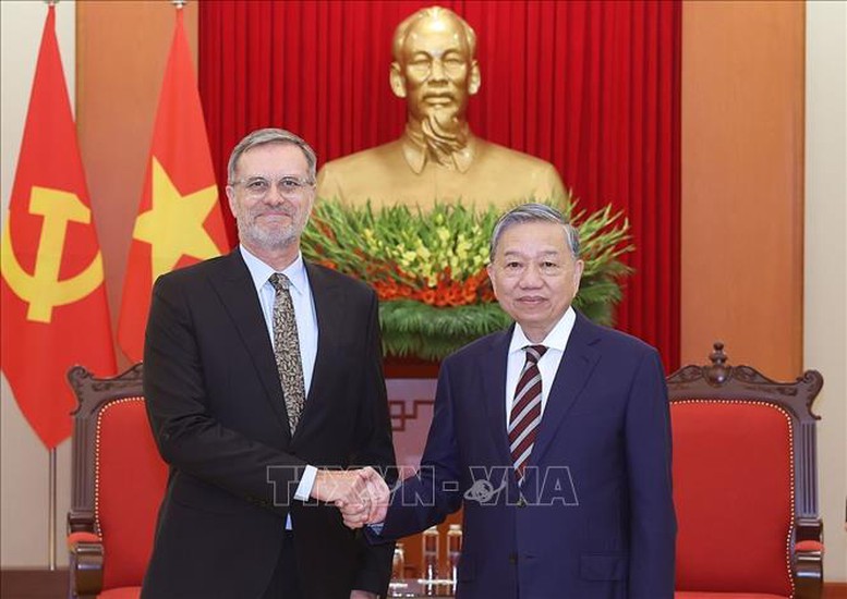 Tổng Bí thư Tô Lâm và Đại sứ Pháp nhất trí tiếp tục tăng cường hợp tác trên các diễn đàn đa phương và tổ chức quốc tế, thúc đẩy chủ nghĩa đa phương, thượng tôn luật pháp quốc tế, giải quyết các thách thức toàn cầu.