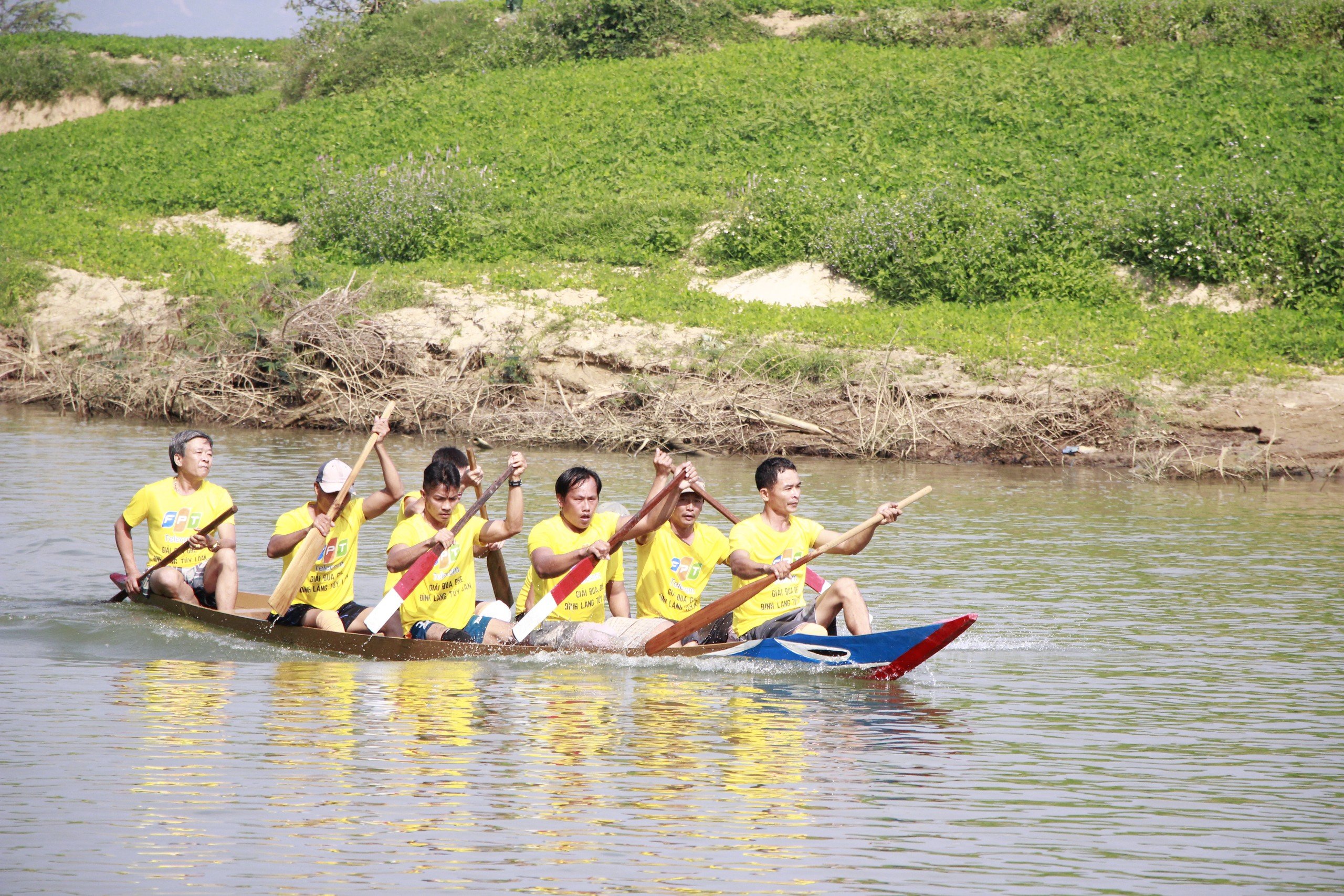 Rất đông người dân đứng bên bờ sông cổ vũ cho các đội đua.