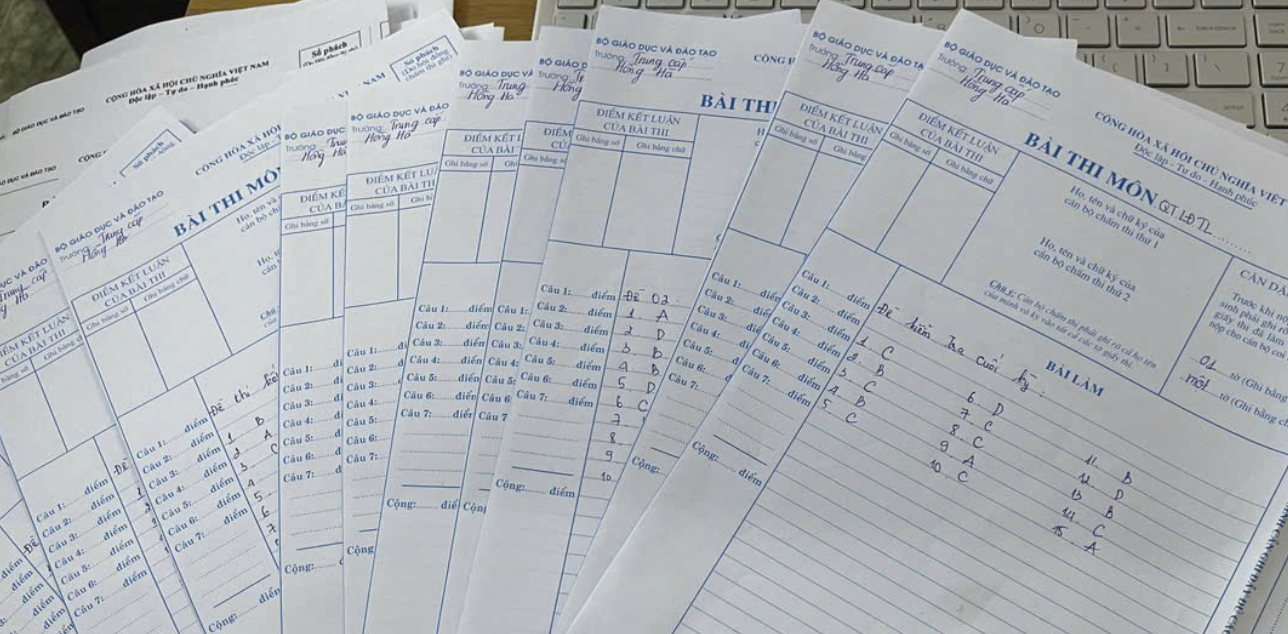 Học viên còn có thể làm bài kiểm tra, bài thi hết môn (được cung cấp sẵn đáp án) sau đó gửi về trường.