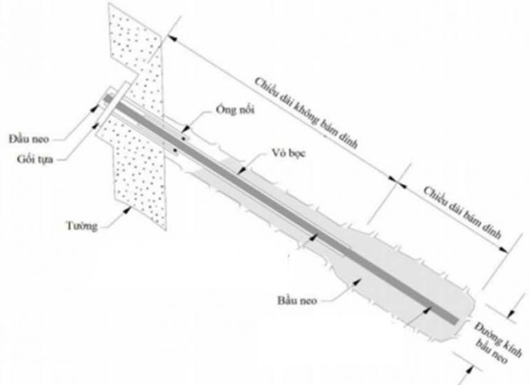 Theo TCVN 8870-2011 “Thi công và nghiệm thu neo đất dùng trong công trình GTVT”, neo ứng suất trước được thi công theo 6 bước như sau: