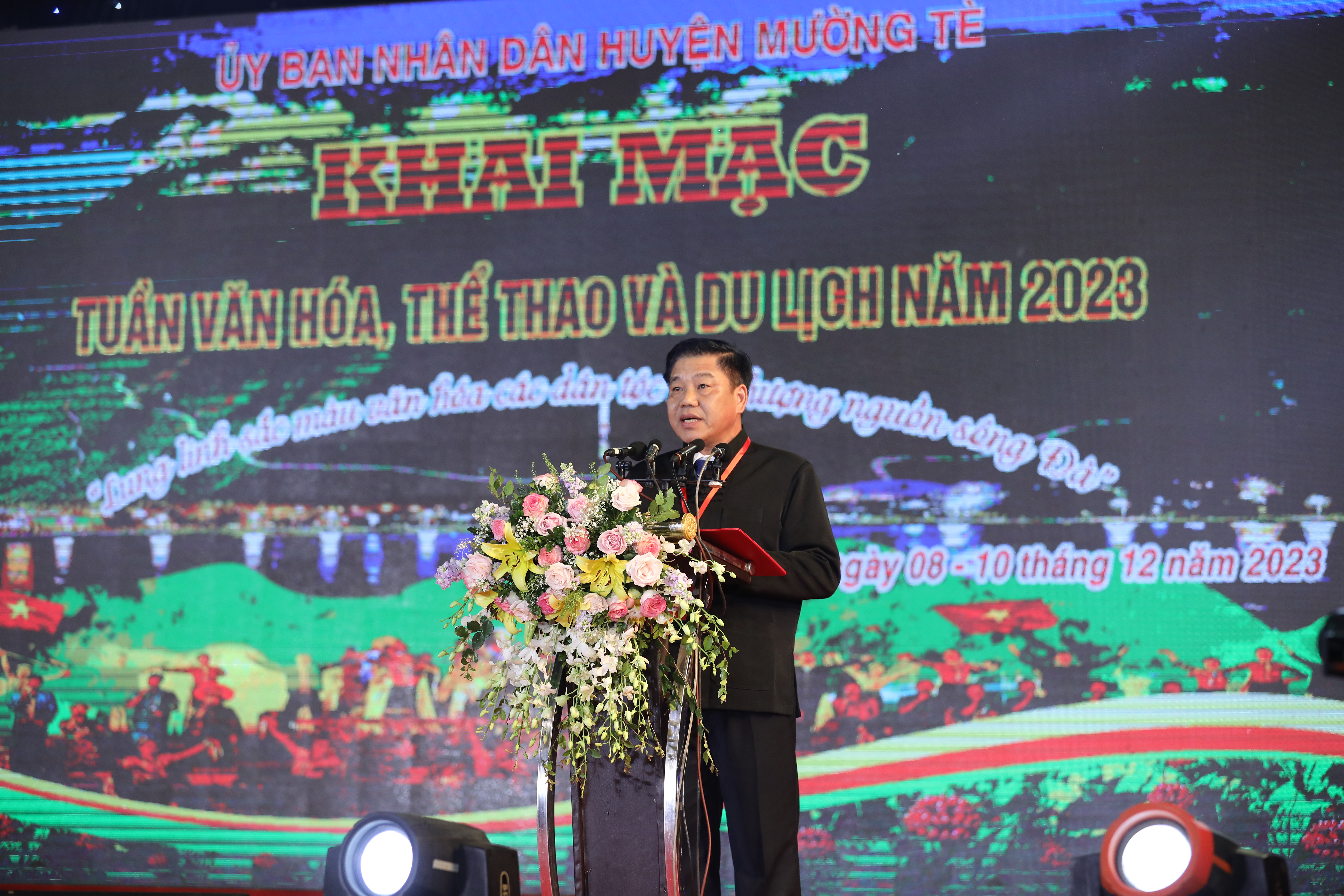Phát biểu tại Lễ khai mạc, ông Đao Văn Khanh - Chủ tịch UBND huyện Mường Tè khẳng định: “Văn hóa truyền thống các dân tộc là di sản văn hóa quý giá, nó không chỉ là di sản của một vùng đất, con người hay địa phương mà nó là di sản quý báu của quốc gia; góp phần làm lên sự phong phú, đa dạng của nền văn hóa. Thông qua các hoạt động của Tuần văn hóa, thể thao và du lịch sẽ tạo ra một không gian văn hóa đặc biệt vô cùng ý nghĩa để các chủ thể văn hóa, nghệ nhân, diễn viên, vận động viên có cơ hội được gặp gỡ, giao lưu, được chia sẻ những kinh nghiệm quý báu trong việc bảo tồn, gìn giữ và phát huy các giá trị văn hóa truyền thống, góp phần quan trọng trong việc phát huy truyền thống văn hóa con người huyện Mường Tè tạo động lực phát triển Chân, Thiện, Mỹ theo đúng chủ trương của Đảng”.