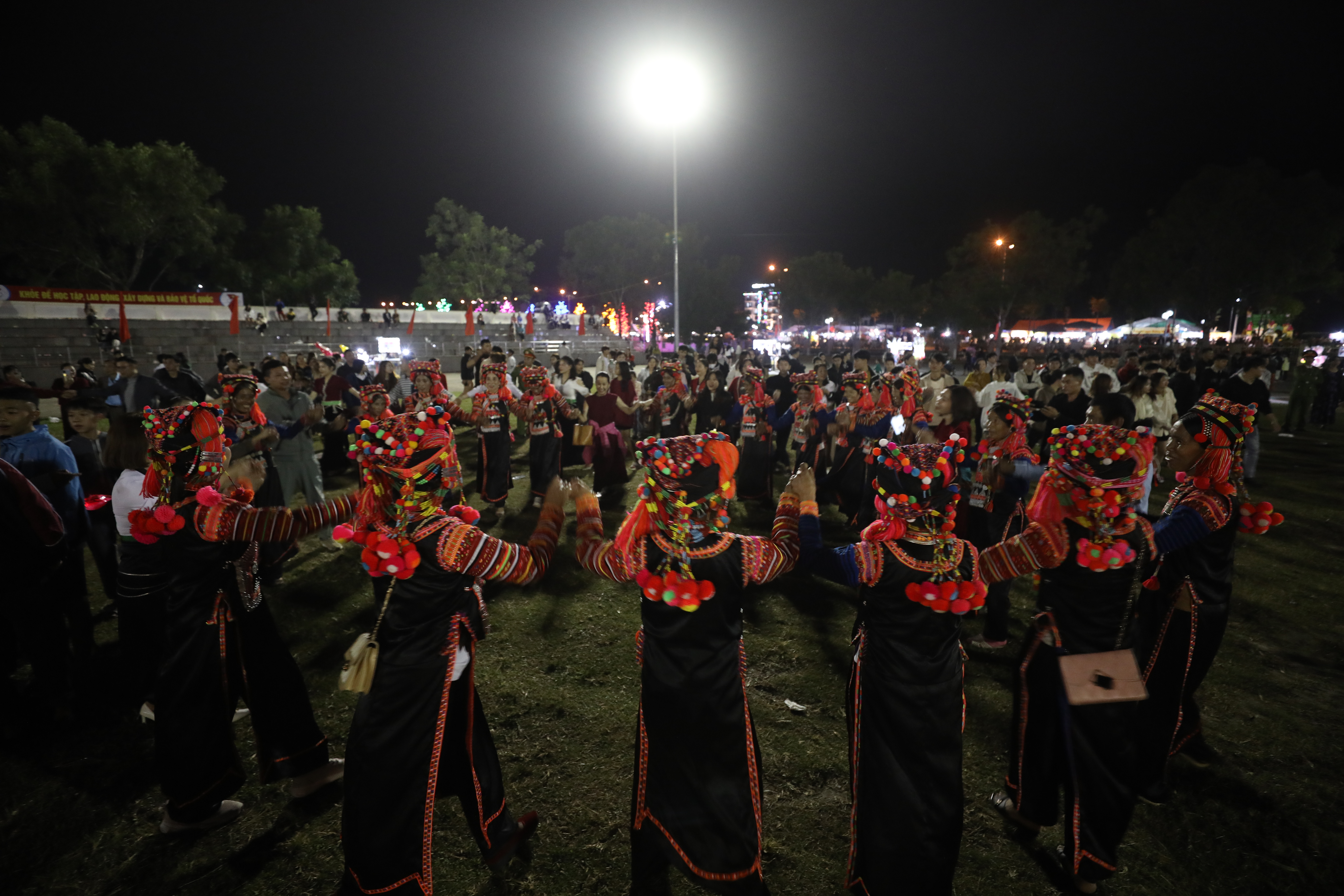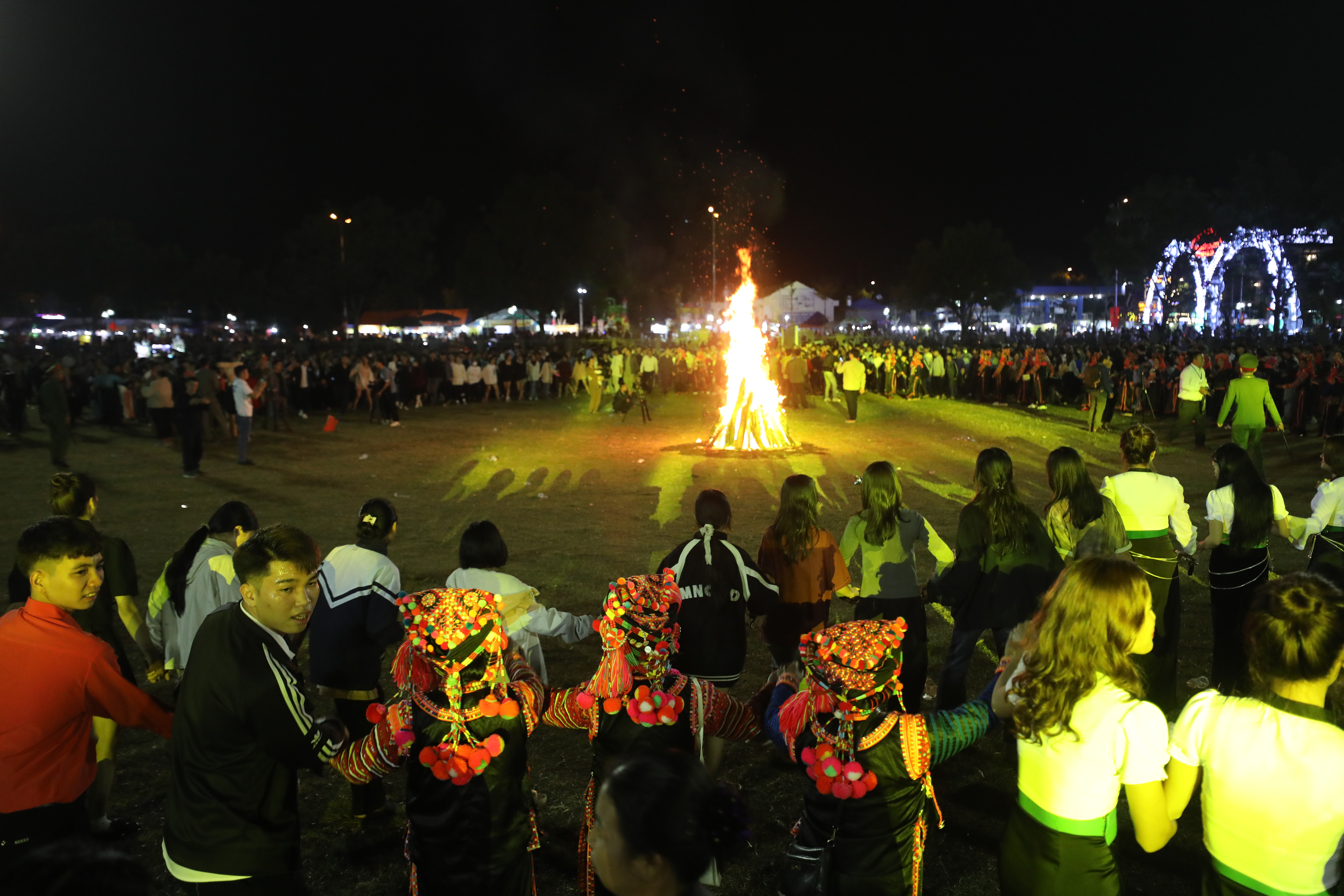 Lễ Khai mạc thu hút đông đảo nhân dân và du khách, tất cả cùng năm tay múa chung vòng xòe bên ánh lửa hồng. Ảnh: Công Đạt