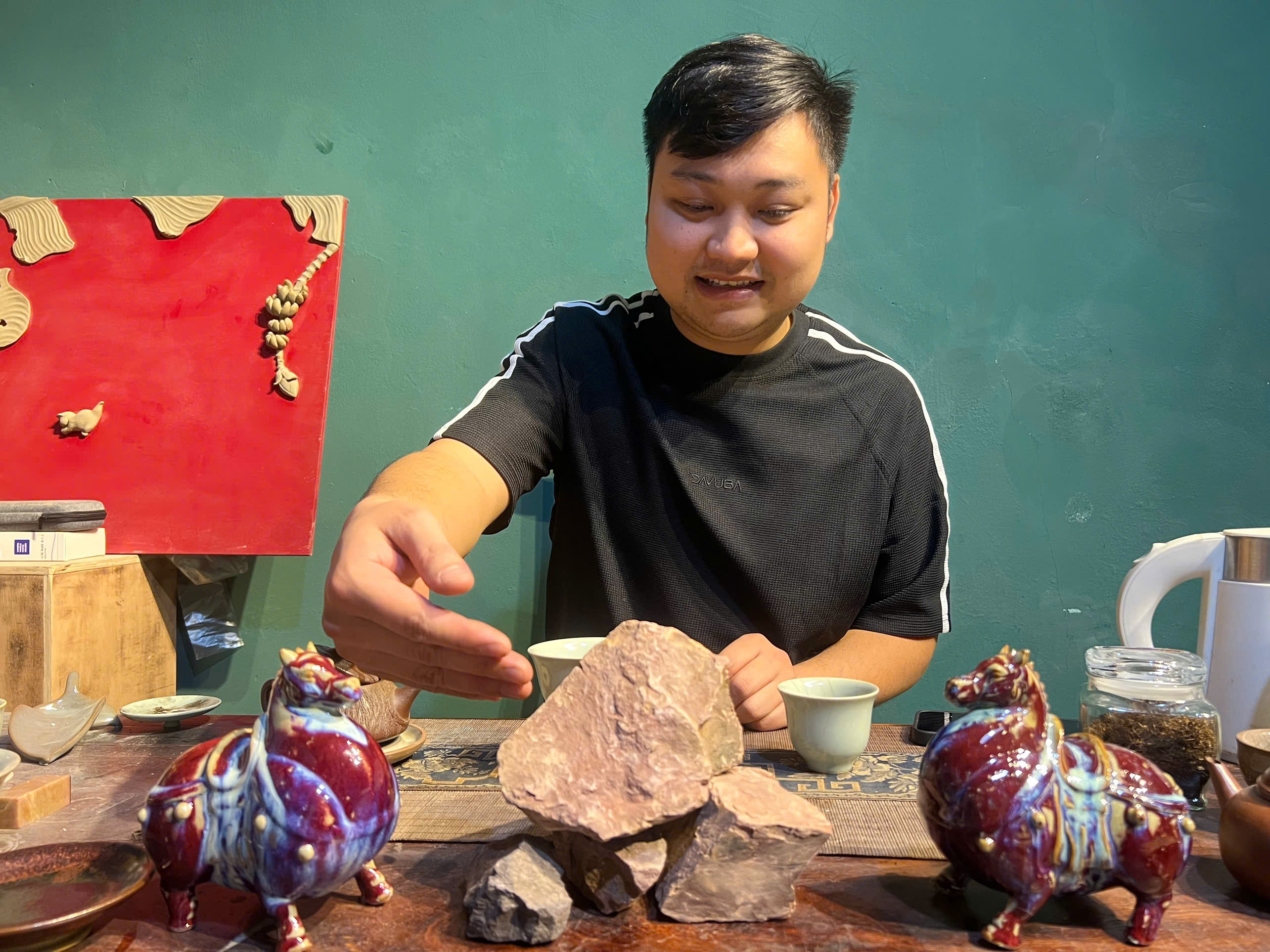 Anh Chiến “Gốm” chia sẻ, từ nhỏ mỗi hơi thở, bước chân của Anh đều in dấu và thấm đẫm những tinh hoa của Cha Ông, nên khi 8 tuổi Anh đã bước chân vào nghề gốm, đến nay 31 tuổi, Anh đã 23 năm gắn bó với nghề gốm. Xưởng gốm của anh chỉ thuê ít lao động bên ngoài mà chủ yếu là anh, em trong gia đình cùng làm ra một số loại sản phẩm gốm sứ đặc trưng được sản xuất bằng thủ công truyền thống và luôn được khách hàng, đặc biệt là những người yêu trà cụ háo hức chờ đón với những giá trị khác biệt, không đụng hàng và riêng có.