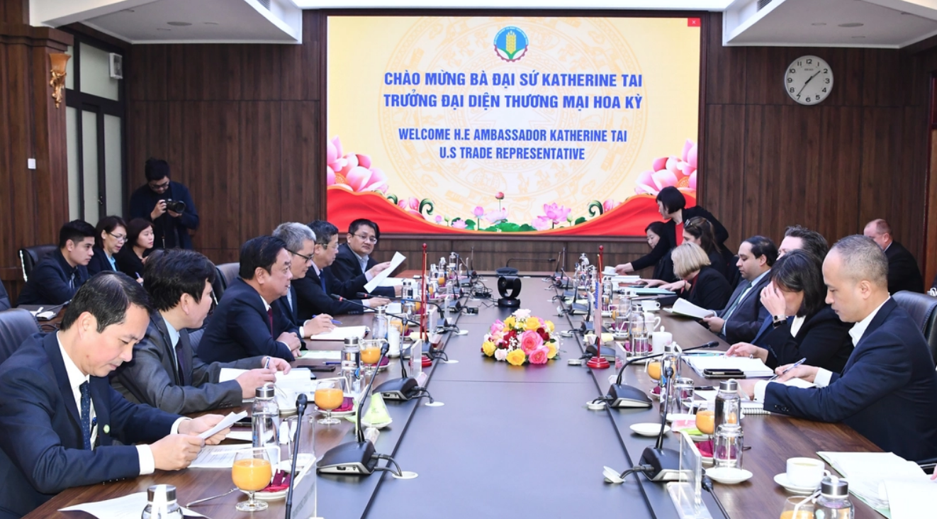 Bộ trưởng Bộ NN- PTNT Lê Minh Hoan làm việc với Đại sứ Katherine Tai, Trưởng Đại diện Thương mại Hoa Kỳ vào ngày 14/2. Ảnh: Văn Giang.