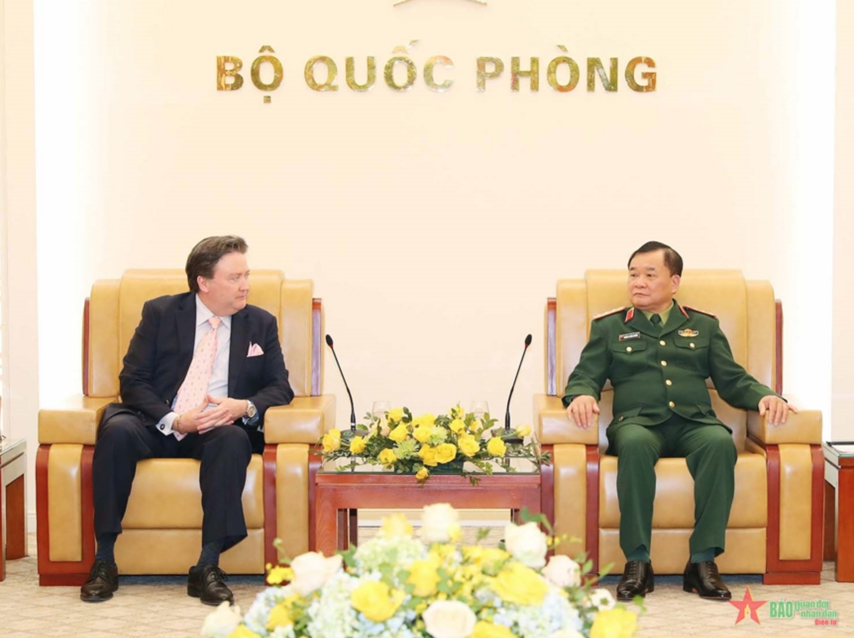 Thượng tướng Hoàng Xuân Chiến và Đại sứ Marc E.Knapper tại buổi làm việc về lĩnh vực hợp tác khắc phục hậu quả bom mìn, vật nổ sau chiến tranh ở Việt Nam.