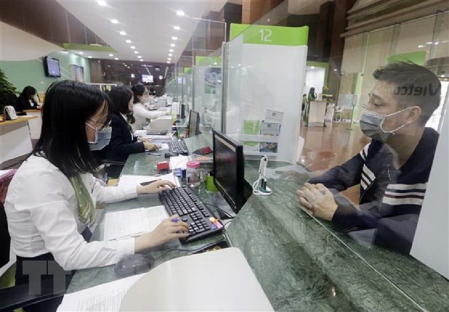 Khách hàng giao dịch tại Hội sở Vietcombank. (Ảnh: Trần Việt/TTXVN)