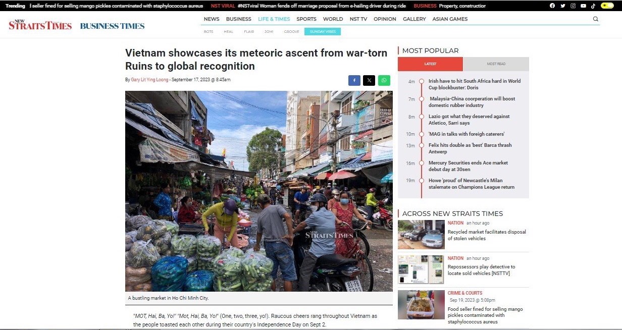 TCVM- "Ngôi sao đang lên trên thế giới" là tiêu đề được sử dụng trong bài viết của báo New Straits Times (Malaysia) về sự vươn lên mạnh mẽ và tái thiết đất nước của Việt Nam sau chiến tranh.