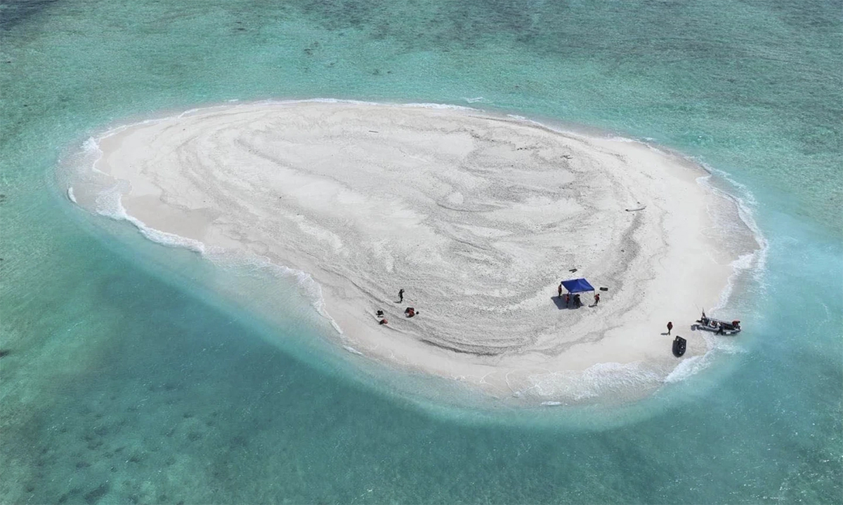Nhóm người Philippines có mặt trái phép trên đá Sandy Cay thuộc quần đảo Trường Sa của Việt Nam ngày 21/3. Ảnh: AP