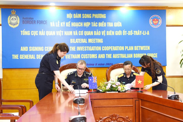 Tổng cục trưởng Tổng cục Hải quan Việt Nam và Cao ủy Cơ quan Bảo vệ Biên giới Australia đã ký Kế hoạch hợp tác điều tra vào ngày 7/5 tại trụ sở Tổng cục Hải quan Việt Nam - Ảnh: VGP/HT