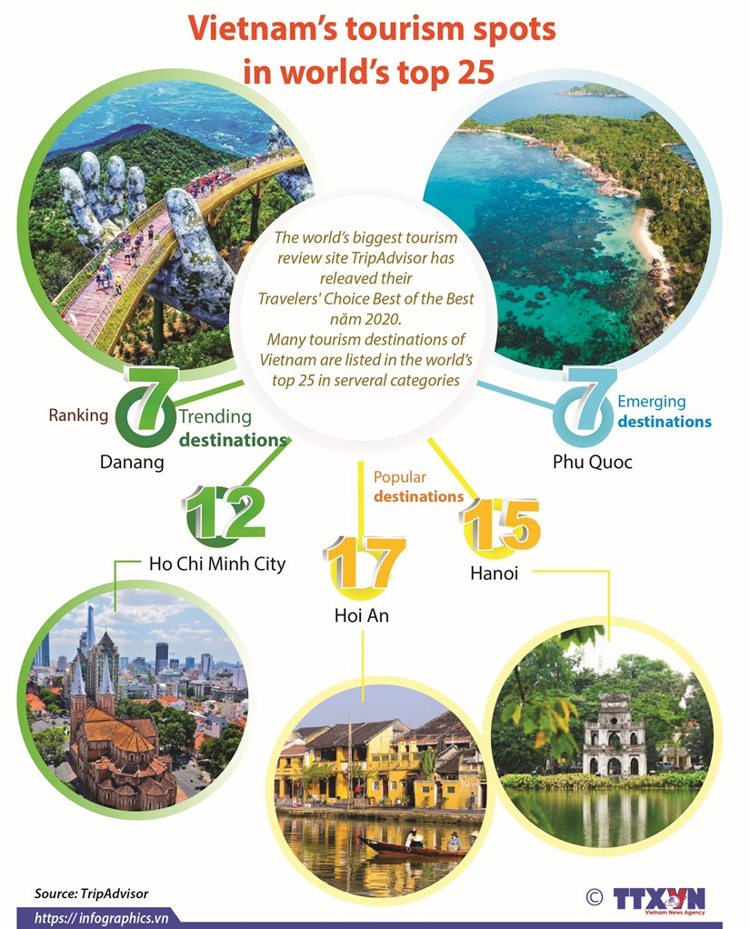 V.U.M - The world’s biggest tourism review site TripAdvisor has releaved theirTravelers' Choice Best of the Best năm 2020. Many tourism destinations of Vietnam are listed in the world’s top 25 in serveral categories