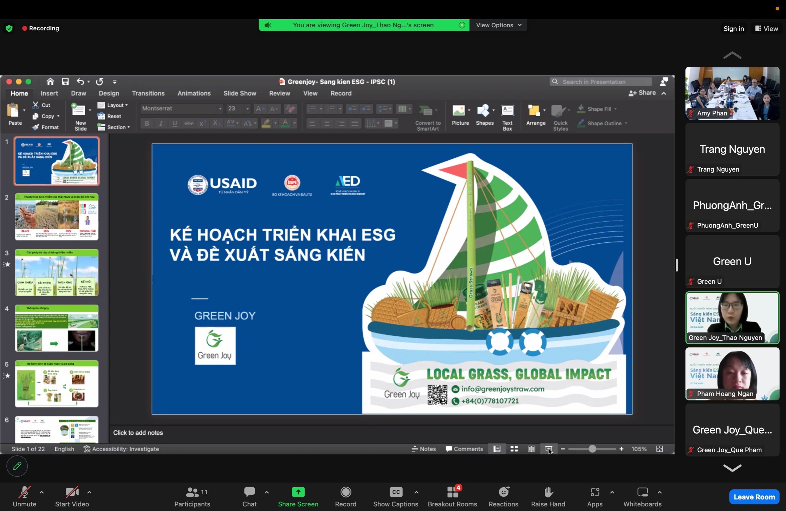 Đầu tháng 6 năm 2023, Top 10 doanh nghiệp xuất sắc nhất vào vòng chung kết đã được công bố rộng rãi. Sau đó các doanh nghiệp này đã được Dự án Tăng cường năng lực cạnh tranh khu vực tư nhân Việt Nam (IPSC) đào tạo và tư vấn chuyên sâu nhằm nâng cao năng lực và hiểu biết về ESG, kinh tế tuần hoàn và kinh doanh bao trùm cho các doanh nghiệp này.