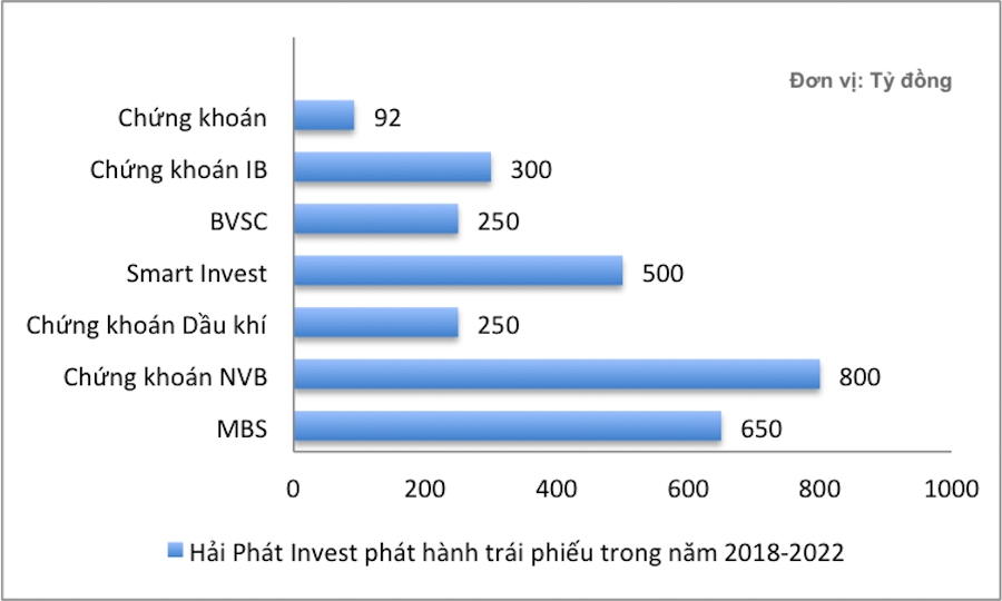 Hàng loạt các công ty chứng khoán đã tư vấn, làm đại phát phát hành trái phiếu riêng lẻ cho Hải Phát Invest. Cụ thể, Chứng khoán MB (giá trị trái phiếu gốc 650 tỷ đồng), Chứng khoán NVB (800 tỷ đồng), Chứng khoán dầu khí (250 tỷ đồng), Chứng khoán IB (300 tỷ đồng), Chứng khoán Smartinvest (500 tỷ đồng), Chứng khoán Bảo Việt (250 tỷ đồng), Chứng khoán Vietinbank (92 tỷ đồng)…