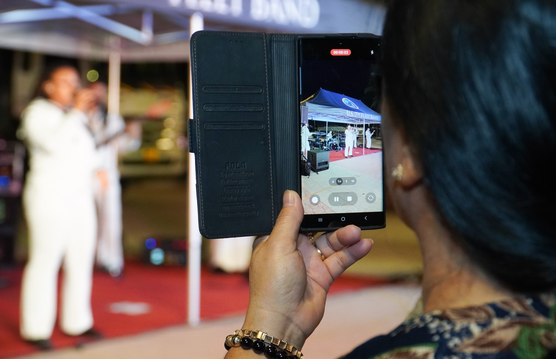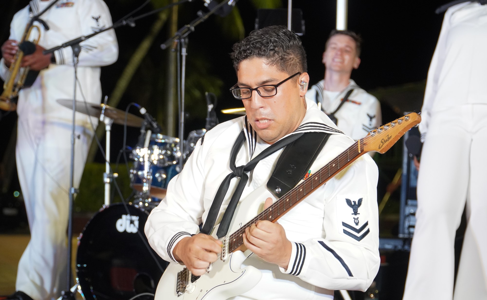 Ca sĩ Ashley Jakayla Pollock, cùng 7 sĩ quan trong ban nhạc hâm nóng bầu không khí bằng những ca khúc nổi tiếng như Déjàvu, Let’s Go Crazy, Separate Ways,... Như món quà bất ngờ, cả ban nhạc bắt đầu biểu diễn ca khúc Cứ Chill Thôi của ban nhạc Việt Chillies, khi giai điệu vừa cất lên, hàng trăm khán giả bắt đầu hò reo, cổ vũ, nhún nhảy theo nhạc.