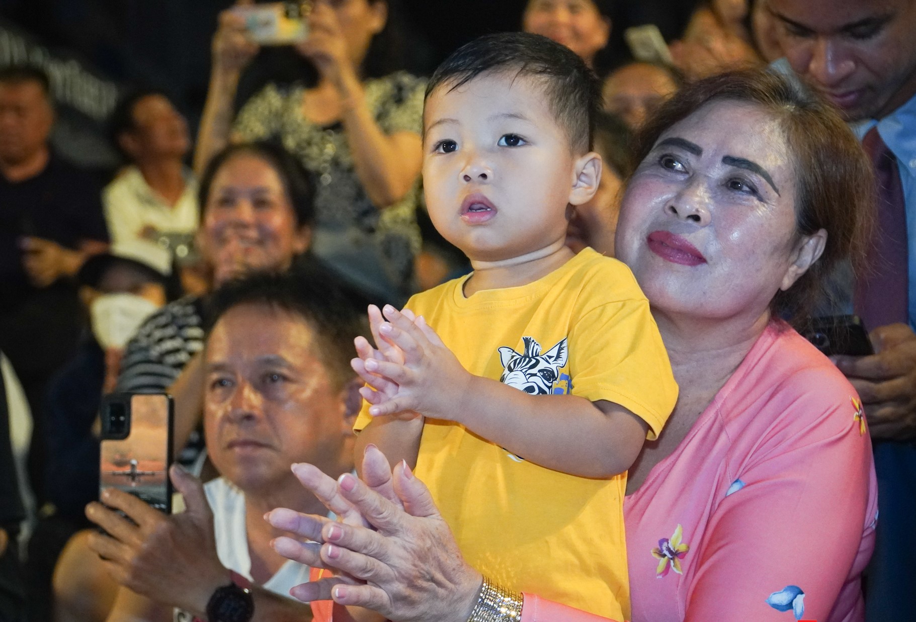 Bà Trần Thể cùng cháu ngoại đến xem buổi biểu diễn.