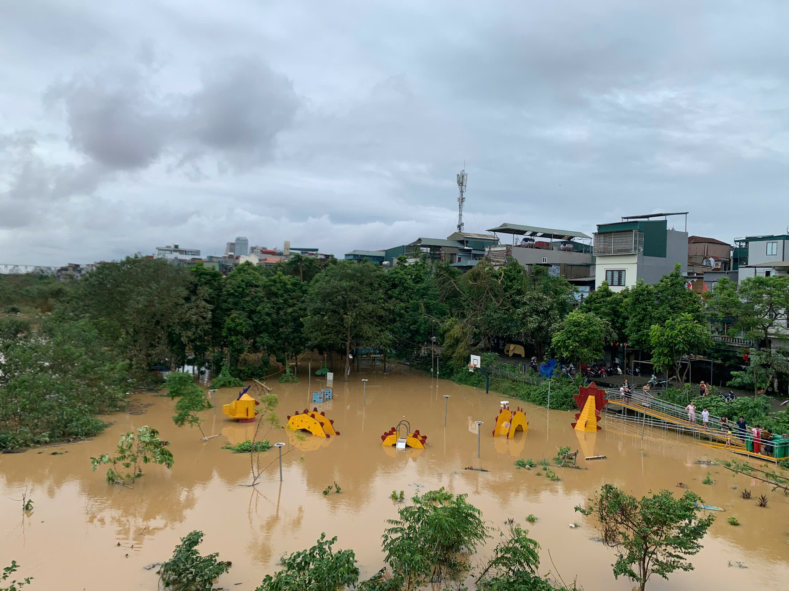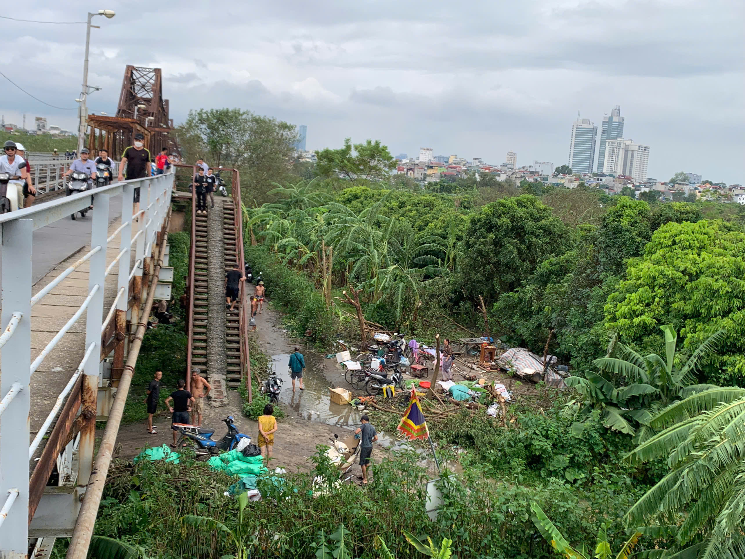 "Hàng chục hộ dân tại khu vực chân cầu Long Biên đã bắt đầu di dời trẻ em và người lớn tuổi từ hôm qua khi nghe đài báo có lũ rồi.