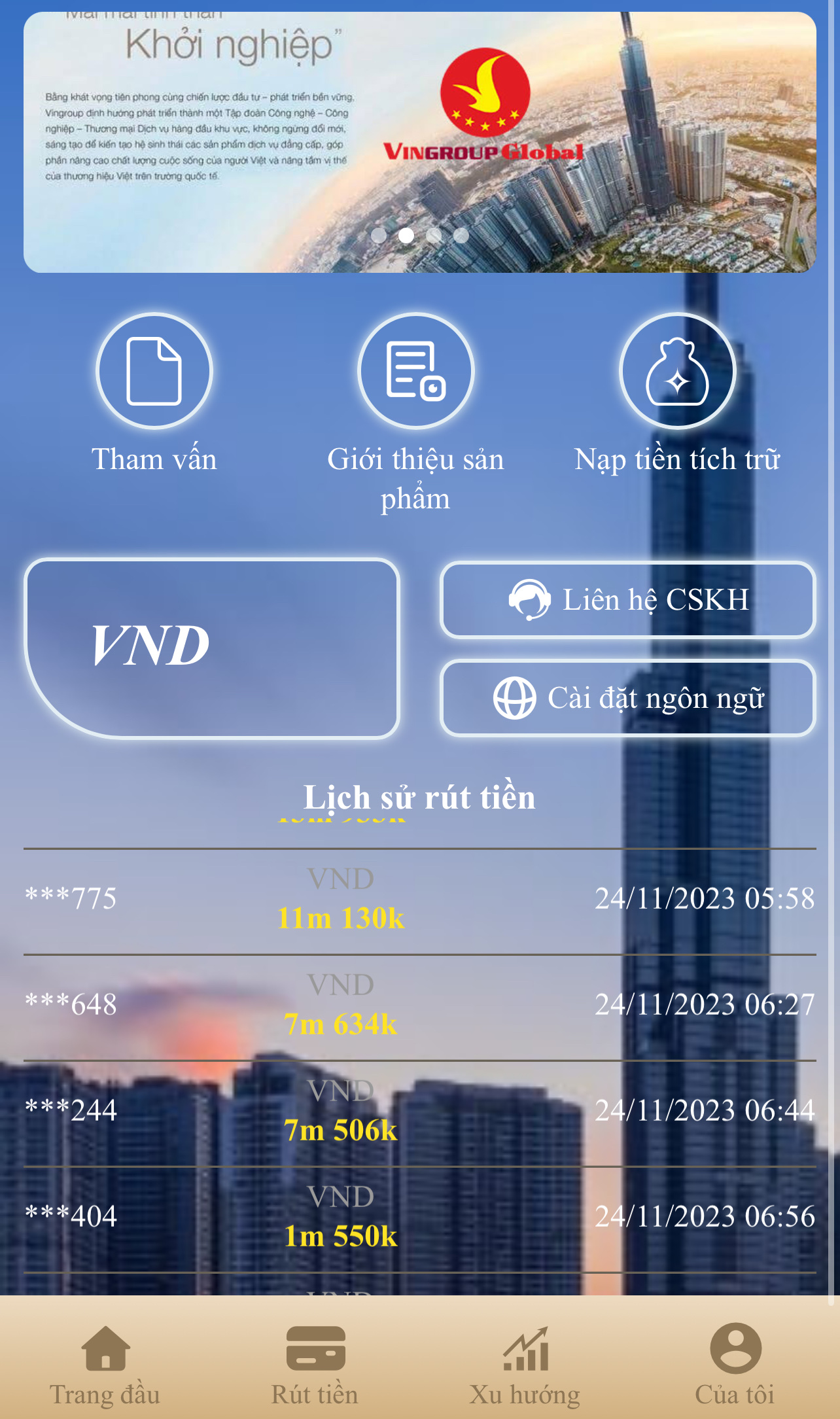 Anh N.V.K (Hà Nội) cho biết, đầu tháng 11/2023, anh được một cá nhân giới thiệu là chuyên viên tài chính cấp cao của Tập đoàn VinGroup mời gọi đầu tư cổ phiếu họ Vin với cam kết lãi suất cao, được đảm bảo không mất vốn. Tin lời người này, anh K. đã tạo tài khoản trên ứng dụng VinTrade và nạp vào đó 10.000 USD. Thời gian đầu, anh giao dịch có lãi và có thể rút được tiền.