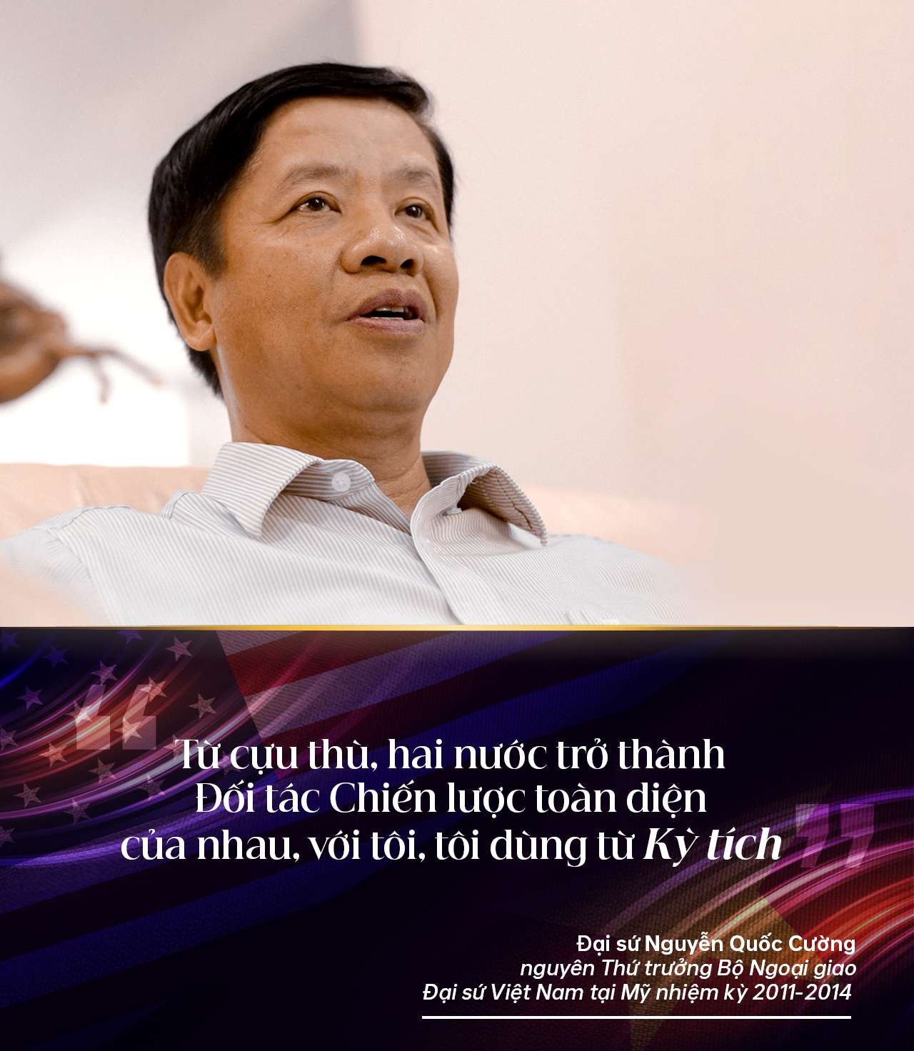Trao đổi với chúng tôi, Đại sứ Nguyễn Quốc Cường, nguyên Thứ trưởng Bộ Ngoại giao, Đại sứ Việt Nam tại Mỹ nhiệm kỳ 2011-2014, cho rằng quyết định nâng cấp quan hệ giữa Việt Nam - Mỹ của lãnh đạo hai nước là đưa quan hệ giữa Việt Nam - Mỹ lên tầm cao mới, khoác cho quan hệ một tấm áo mới, với tên gọi là Đối tác Chiến lược Toàn diện vì hòa bình, hợp tác và phát triển bền vững.