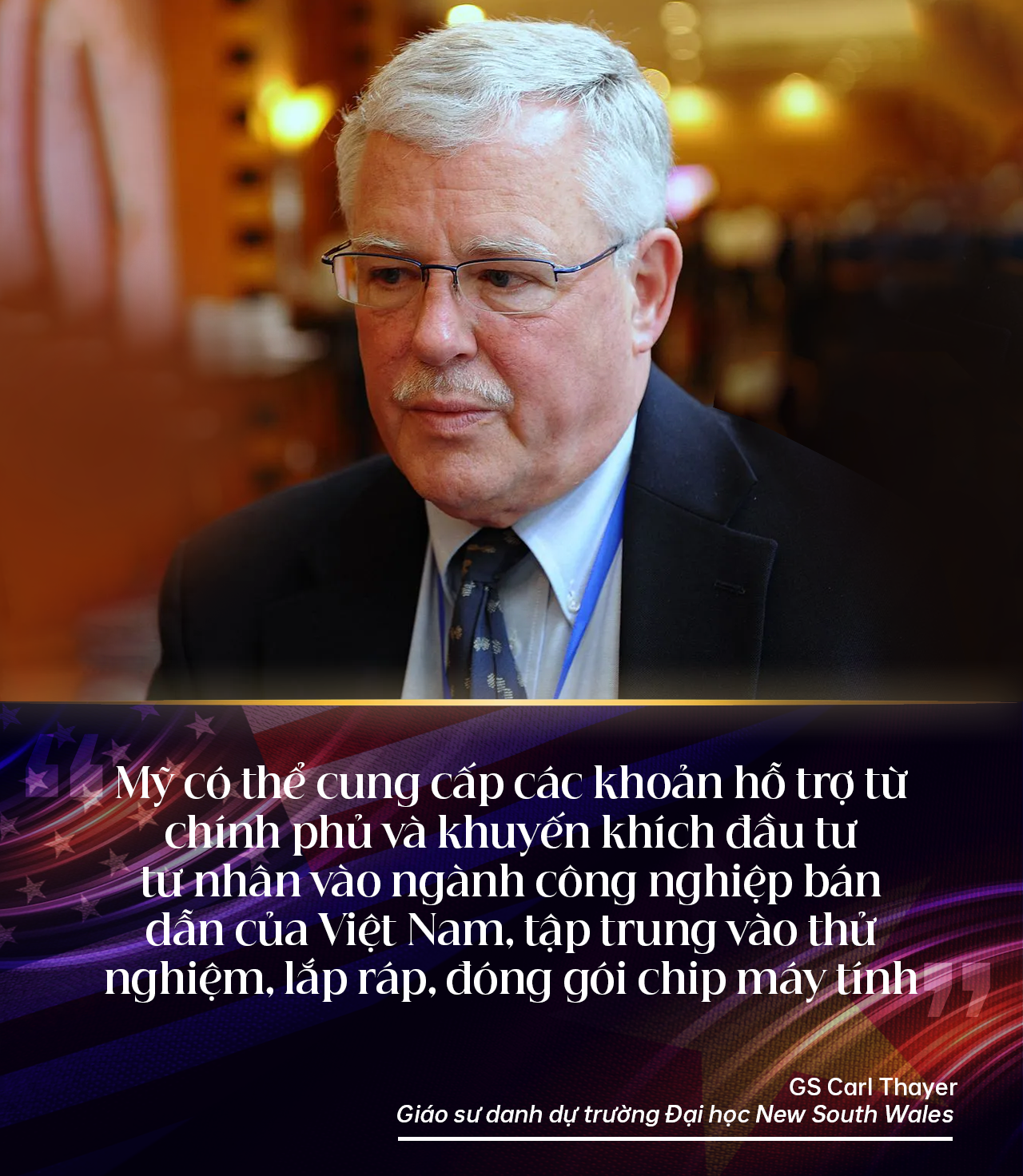 Ông Thayer cũng chỉ ra các lĩnh vực sẽ gia tăng triển vọng hợp tác sau khi nâng cấp lên quan hệ Đối tác Chiến lược Toàn diện. Thương mại, đầu tư và công nghệ nhiều khả năng sẽ được ưu tiên để hợp tác sâu sắc hơn, Mỹ có thể cung cấp các khoản hỗ trợ từ chính phủ và khuyến khích đầu tư tư nhân vào ngành công nghiệp bán dẫn của Việt Nam, tập trung vào thử nghiệm, lắp ráp, đóng gói chip máy tính. Các lĩnh vực ưu tiên khác giữa hai nước có thể bao gồm hợp tác chuyển giao công nghệ liên quan tới kinh tế kỹ thuật số, chuyển đổi năng lượng xanh và khử carbon.