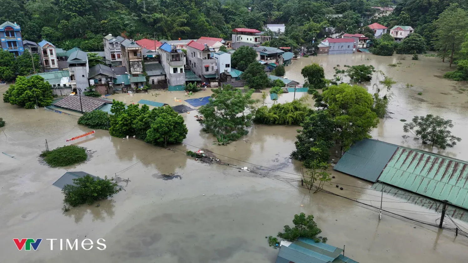 Xã Bảo Lâm, tỉnh Cao Bằng chìm trong biển nước, giao thông bị cô lập. (Ảnh: VTV Times)
